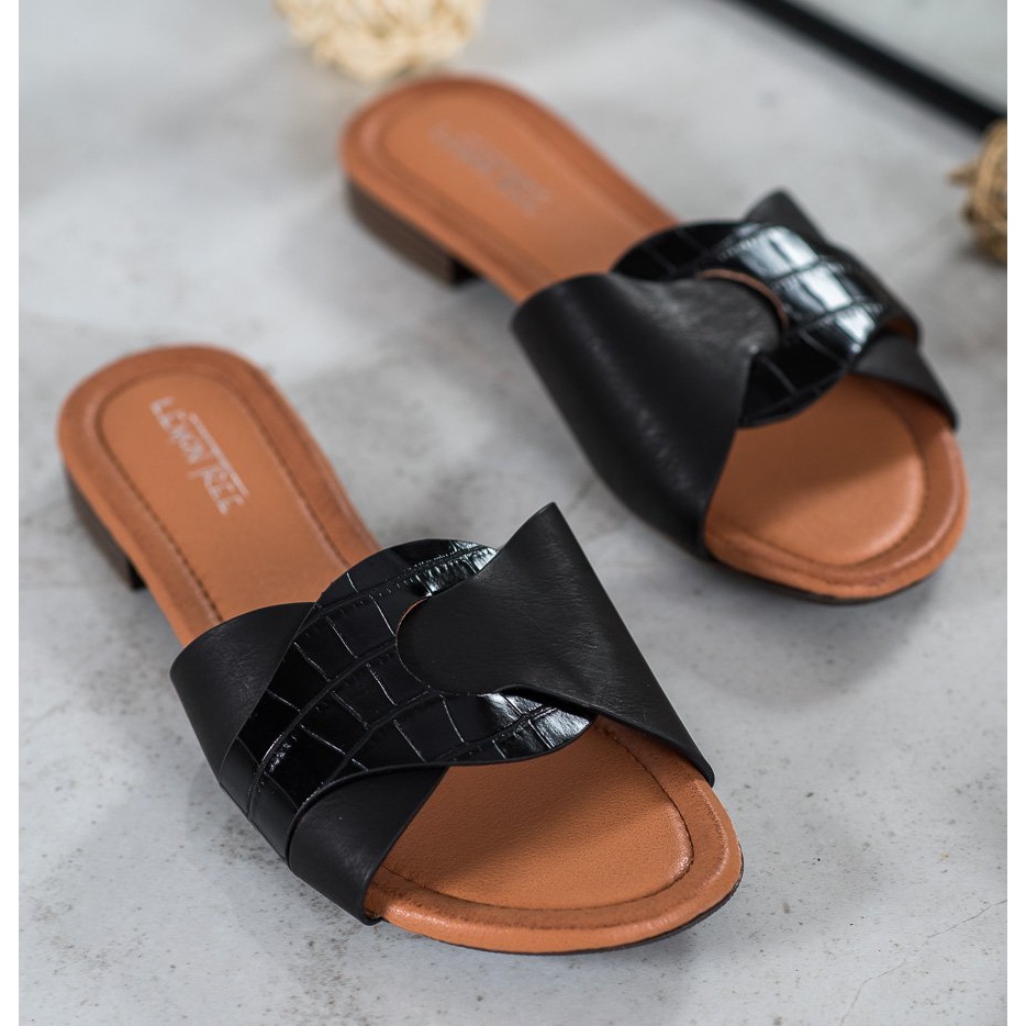 Détails: SHELOVET Pantoufles élégantes en cuir écologique noir