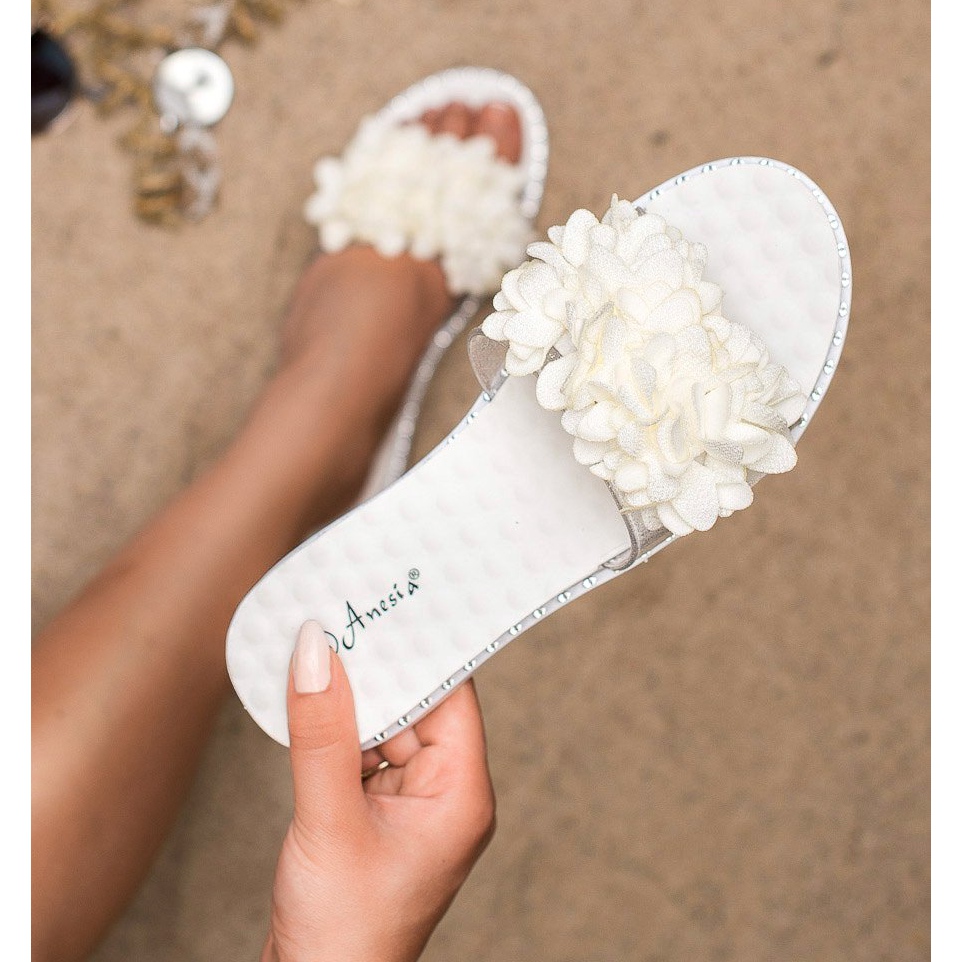Détails: Anesia Paris Pantoufles En Caoutchouc Avec Fleurs blanche