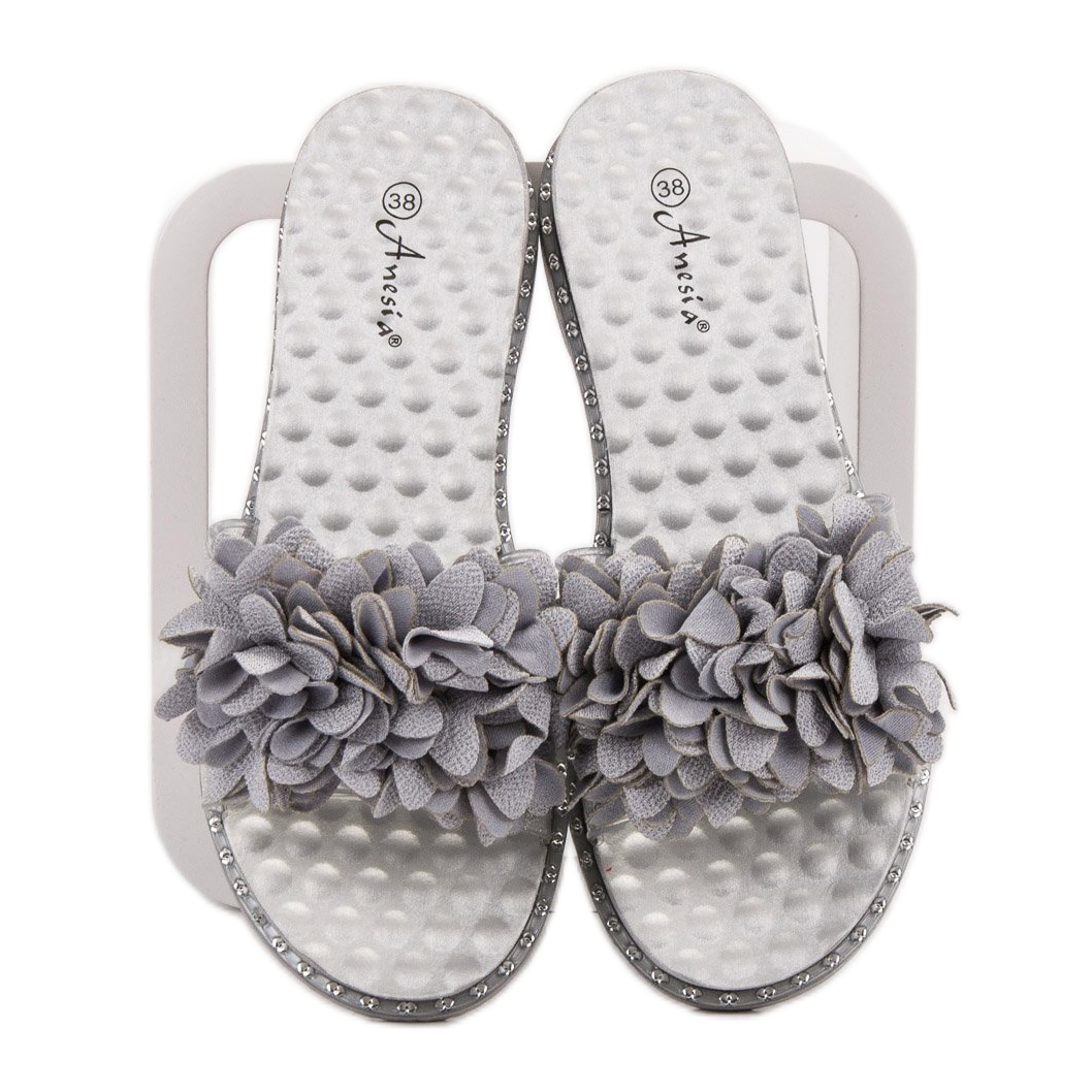 Détails: Anesia Paris Pantoufles En Caoutchouc Avec Fleurs gris