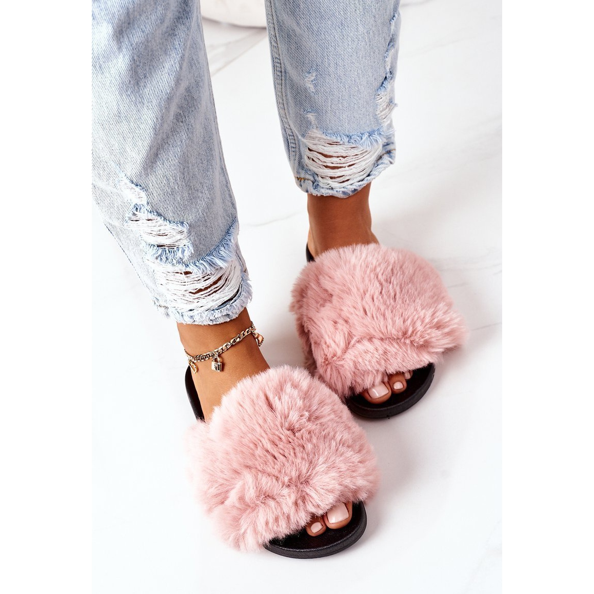 FJ1 FJ1 Pantoufles En Caoutchouc Avec Fourrure Douce Rose