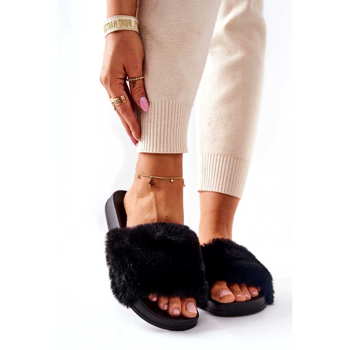 PH1 Pantoufles En Caoutchouc Avec Fourrure Emmie Noire