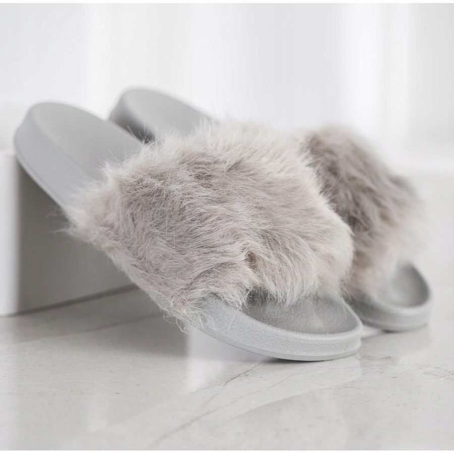 SHELOVET SHELOVET Pantoufles En Caoutchouc Avec Fourrure gris