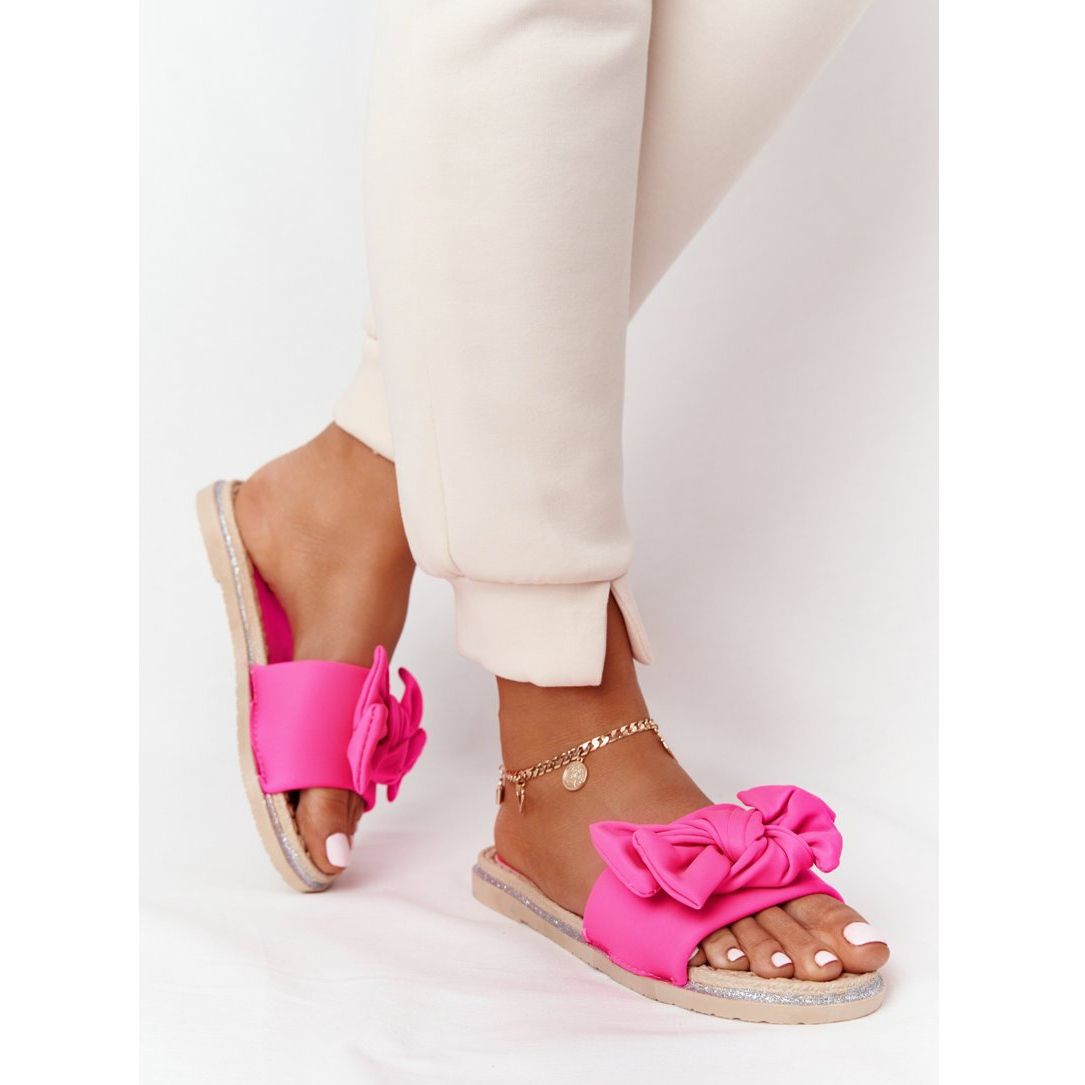 Nous vous présentons les tongs en caoutchouc rose Andrea avec nœud du célèbre fabricant MSMG - le choix parfait pour les femmes à la recherche de confort et de style les jours d'été !