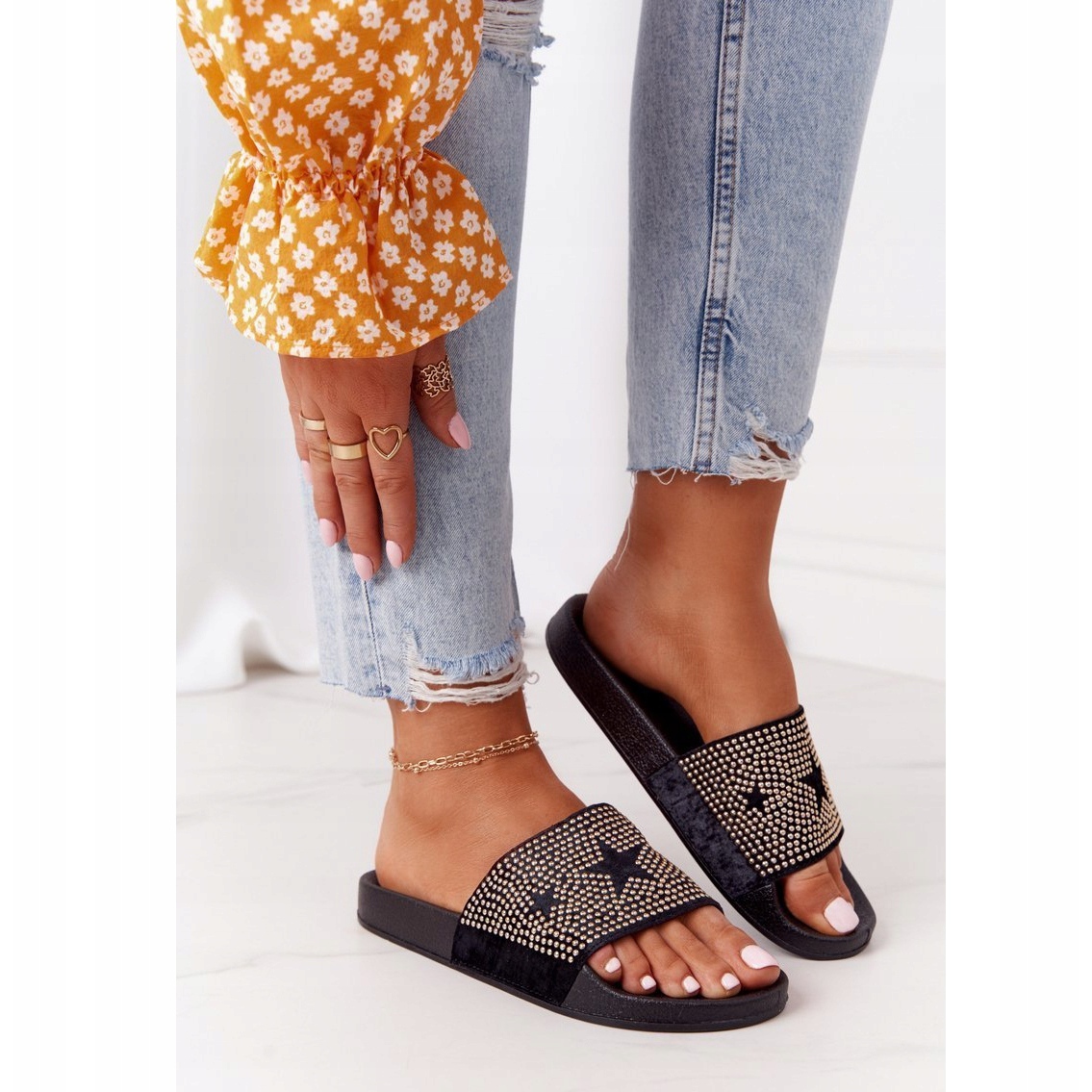 La hauteur de la plateforme de 2 cm offre un confort supplémentaire sans alourdir le pied, et les strass leur confèrent un caractère original, attirant l'attention. Les tongs sont disponibles dans une large gamme de tailles - du 36 au 41 cm, ce qui permet à chaque femme de trouver un modèle parfaitement ajusté.