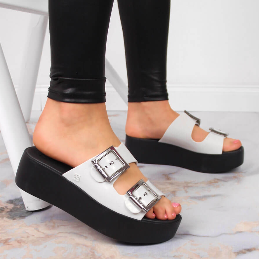 Détails: Pantoufles en caoutchouc pour femmes sur la plate-forme Zaxy HH285181 blanche