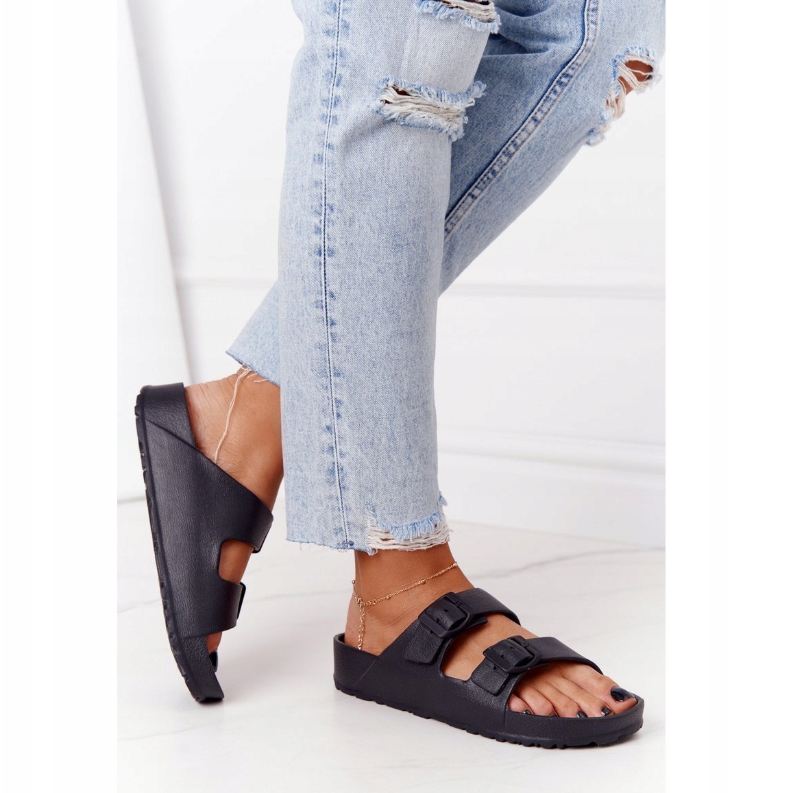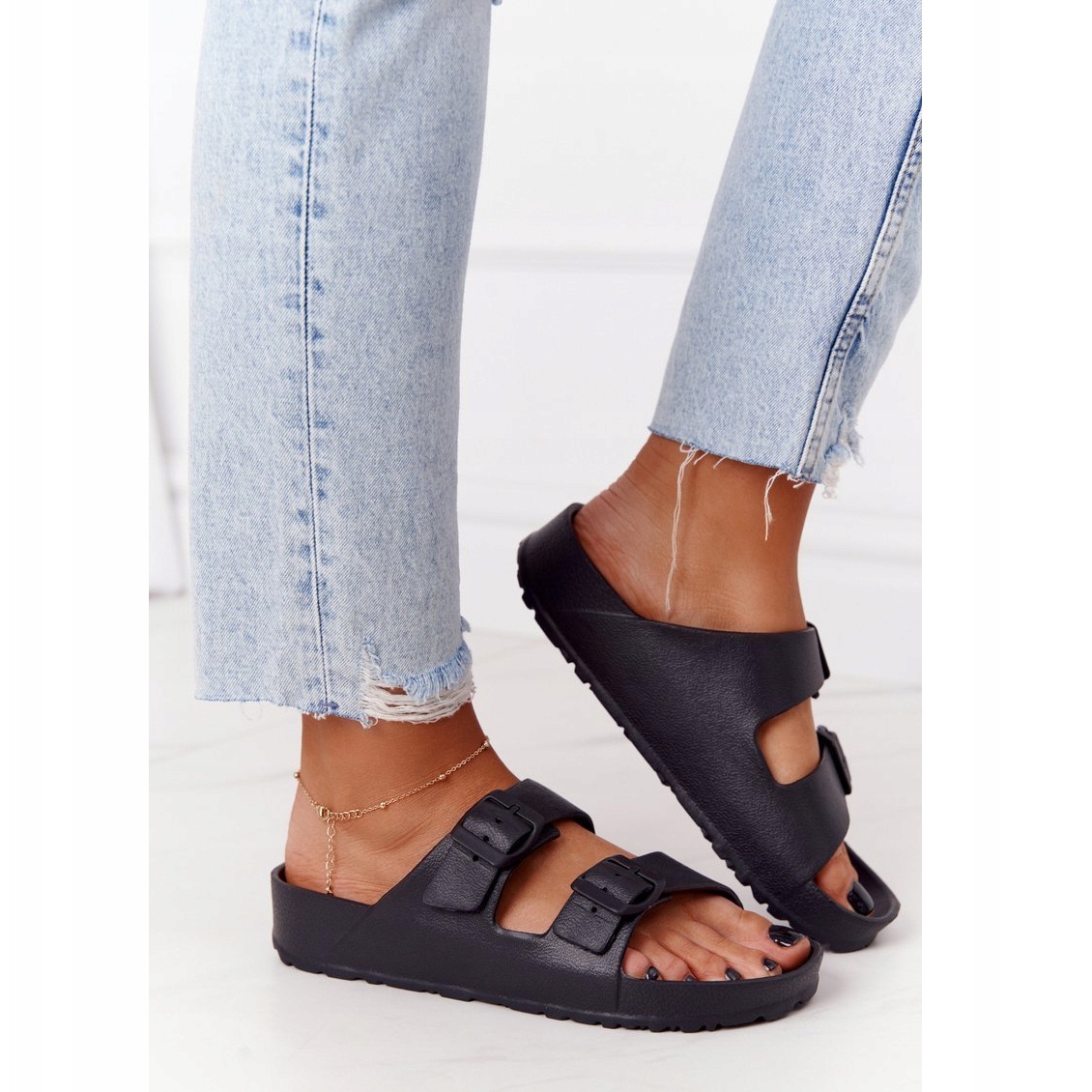 Les tongs sont dotées d'un fermoir pratique et réglable, qui permet de s'adapter parfaitement aux besoins individuels. Ils sont parfaits pour un usage quotidien, aussi bien en promenade qu'à la maison. La couleur noire ajoute de l'élégance et la plateforme de 2 cm de hauteur les rend à la fois confortables et élégantes.