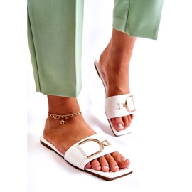 Détails: PG2 Pantoufles en cuir classiques pour femmes avec décoration Shilla blanche