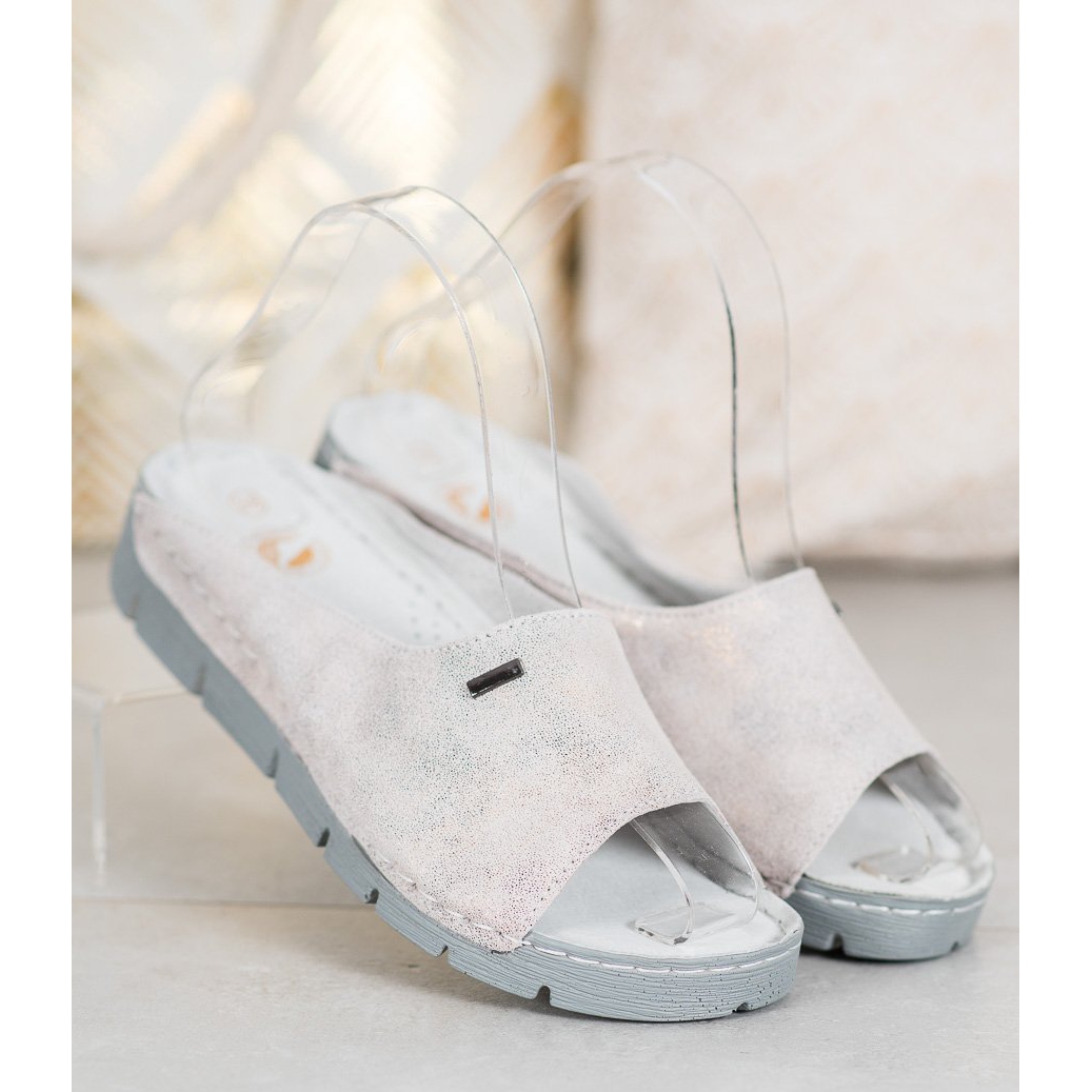 Goodin Goodin Pantoufles En Cuir Confortables gris