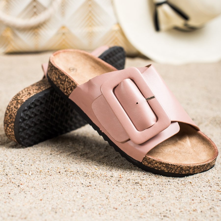 Pantoufles en cuir écologique avec boucle - rose