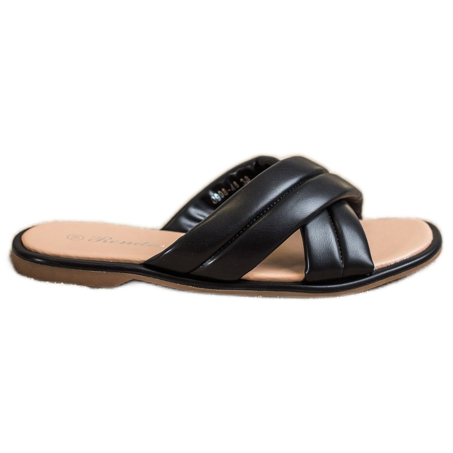 **Tongs à la mode en cuir écologique Renda – Noir**