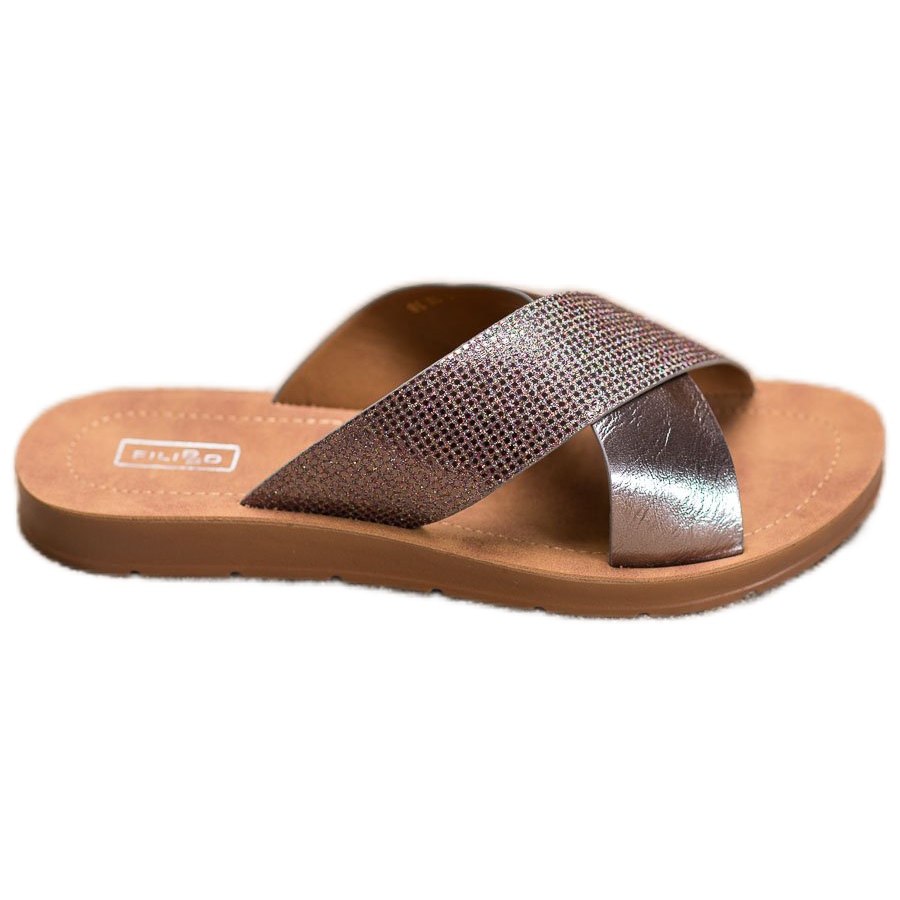 Découvrez le confort et le style à la mode avec les tongs Filippo Shiny Eco Leather dans une élégante couleur grise ! Ces tongs pour femmes uniques, fabriquées en cuir 100 % écologique, sont un choix parfait pour les journées de printemps et d'été.