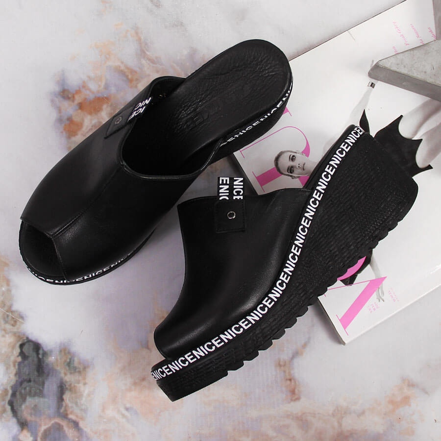 ARTIKER Pantoufles en cuir pour femmes sur un talon compensé Artiker noir le noir