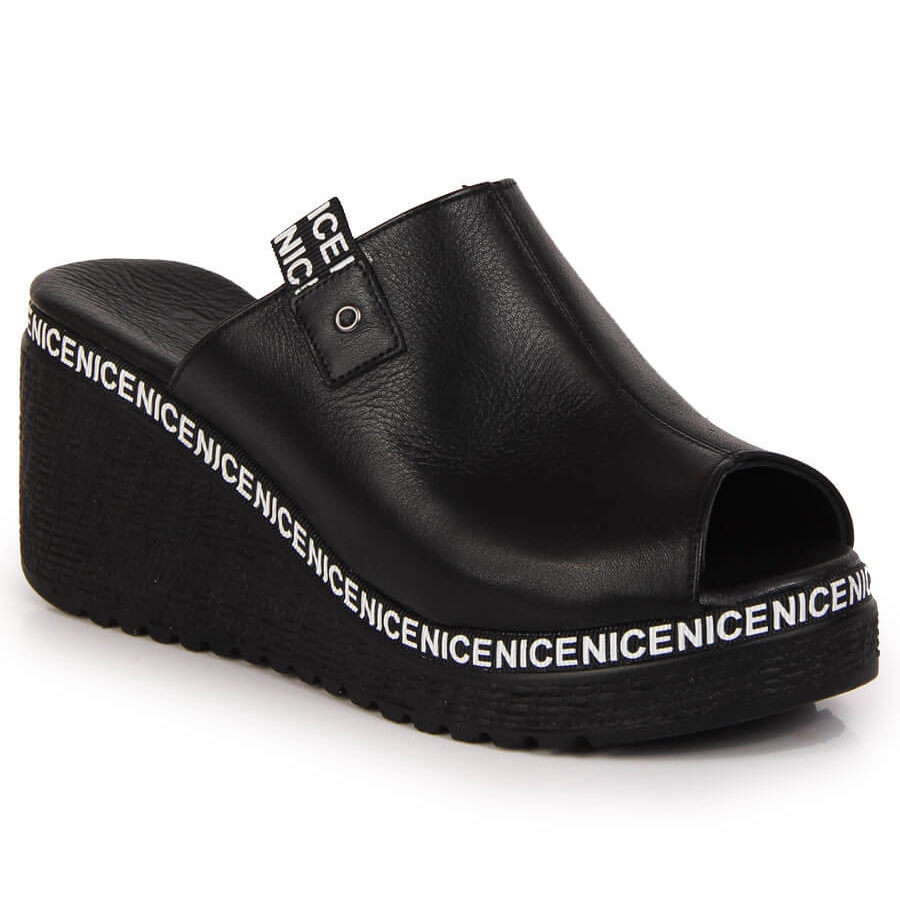 Pantoufles en cuir pour femmes sur un talon compensé Artiker noir