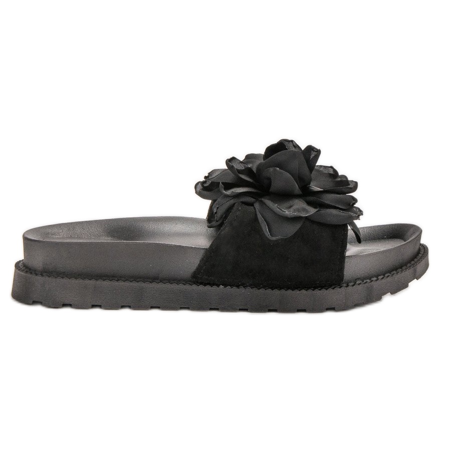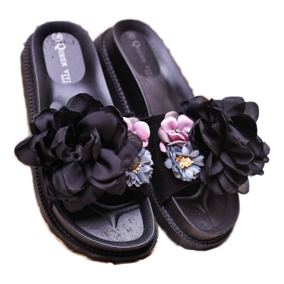 Queen Vivi Pantoufles En Daim Avec Fleurs noir