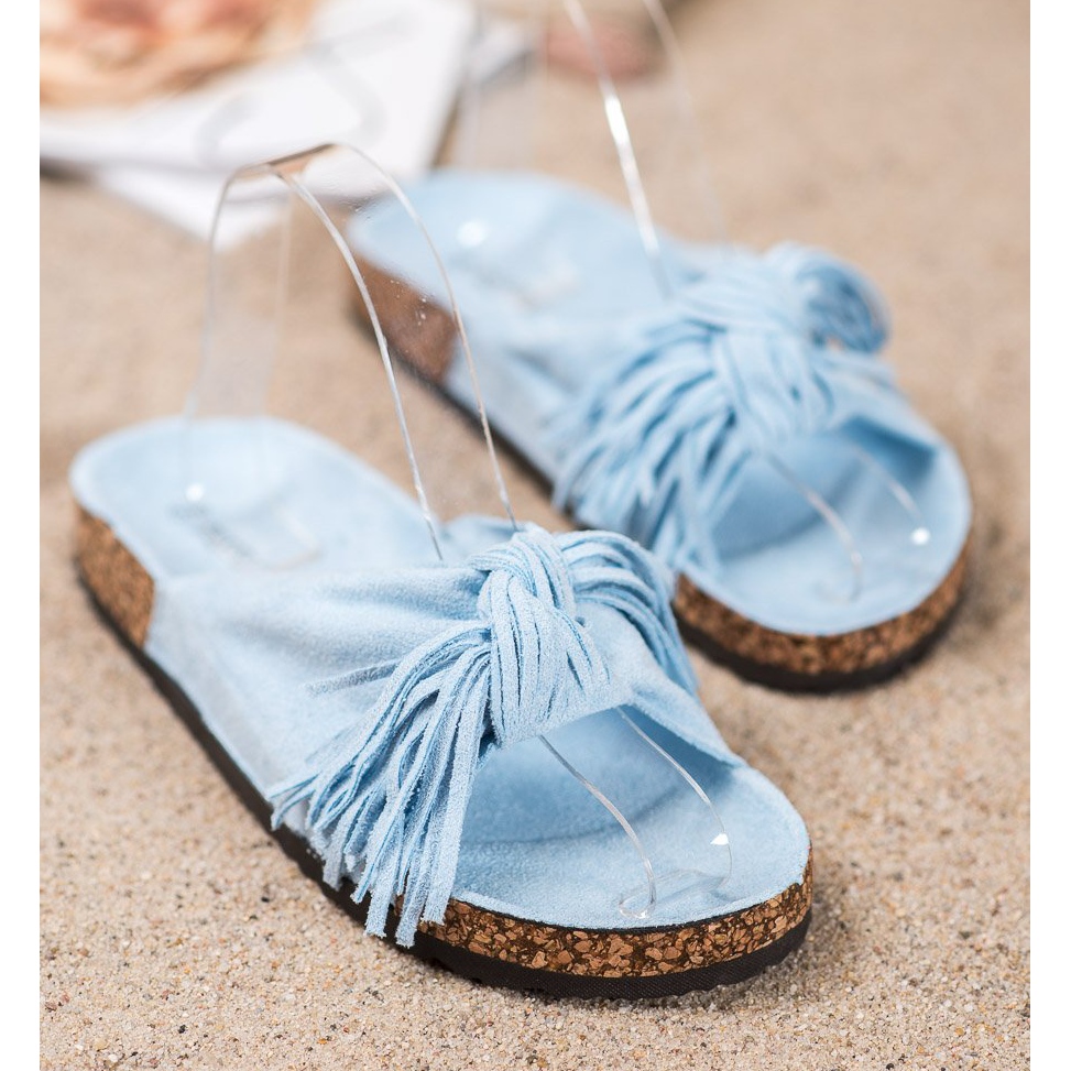 Détails: Bestelle Pantoufles En Daim Avec Franges bleu