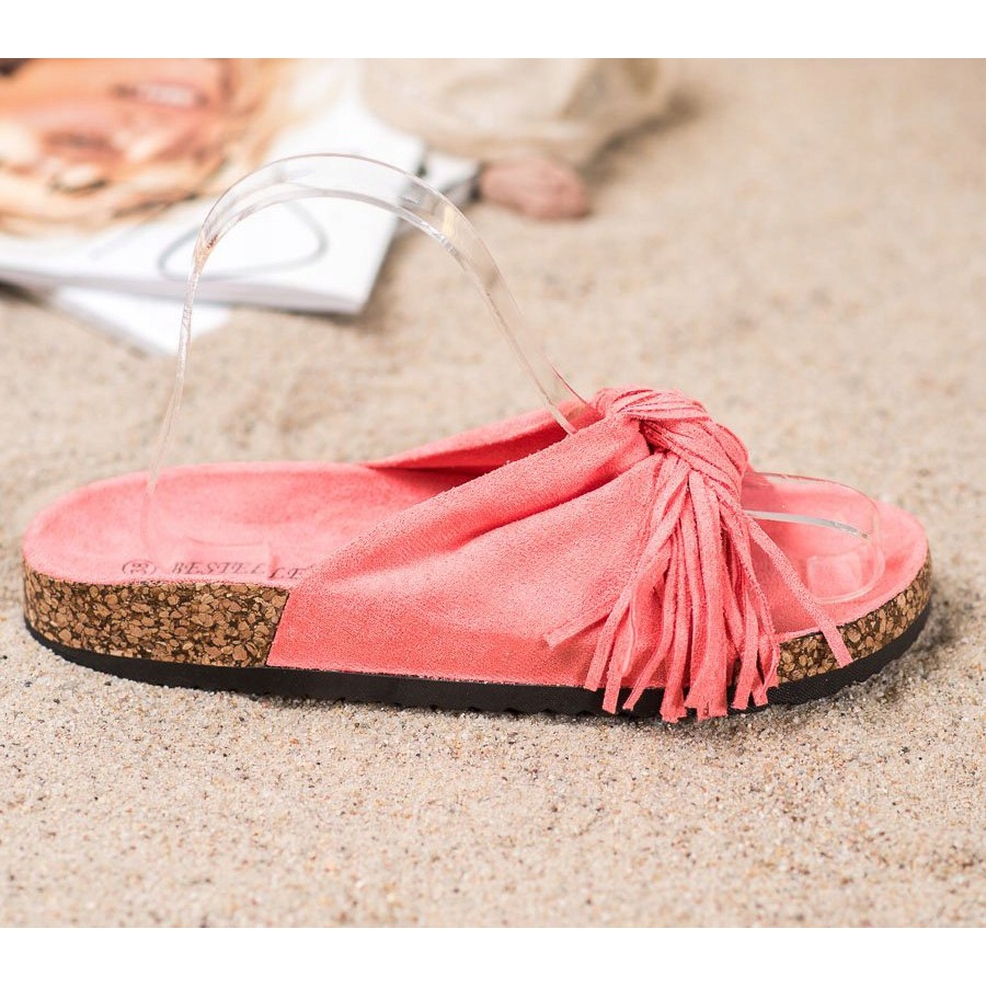 Détails: Bestelle Pantoufles En Daim Avec Franges rouge