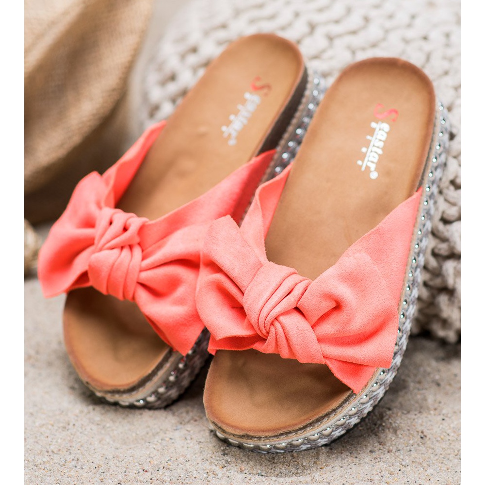 Seastar Seastar Pantoufles En Daim Avec Plate-Forme Décorative rouge orange