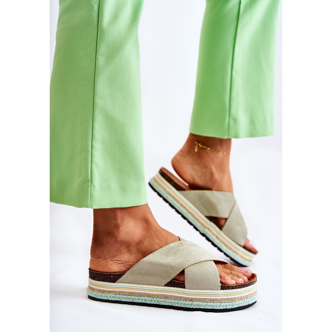 Détails: PG1 Pantoufles en daim pour femmes sur la plate-forme verte Neriko