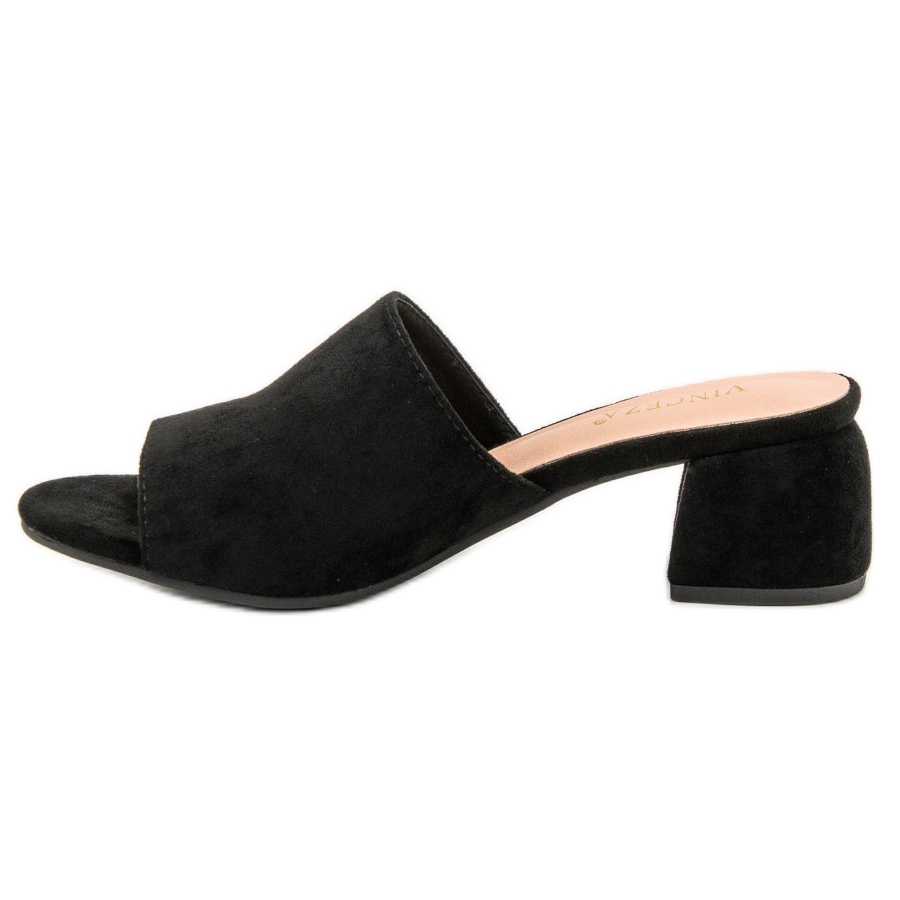 Ce sont les mules à talons hauts parfaites qui compléteront votre collection de chaussures de printemps et d'été ! Les tongs en daim VINCEZA d'une élégante couleur noire sont une proposition qui allie confort, style et durabilité. Grâce à leur construction stable et à leur petit talon haut de 5 cm, ces tongs sont une excellente solution au quotidien.