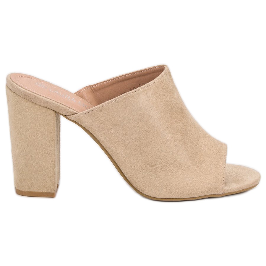 Ces tongs sont un incontournable pour toutes les occasions, au quotidien comme pour les événements spéciaux. Confortables, élégantes et stylées, elles attireront certainement l'attention et constitueront un complément parfait à votre garde-robe estivale. Choisissez les mules à talons hauts en daim marron de Laura Mode et profitez d'un look tendance et d'un confort à chaque pas !