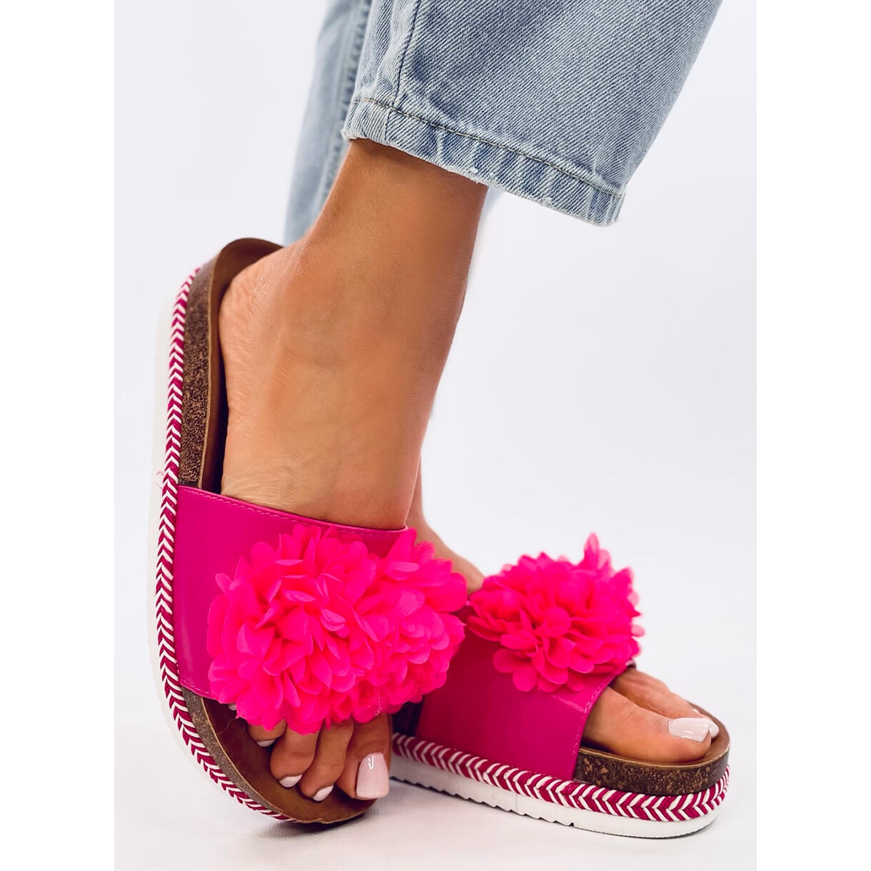 Détails: Pantoufles Fleur de Pêcher Fuchsia du Sud rose