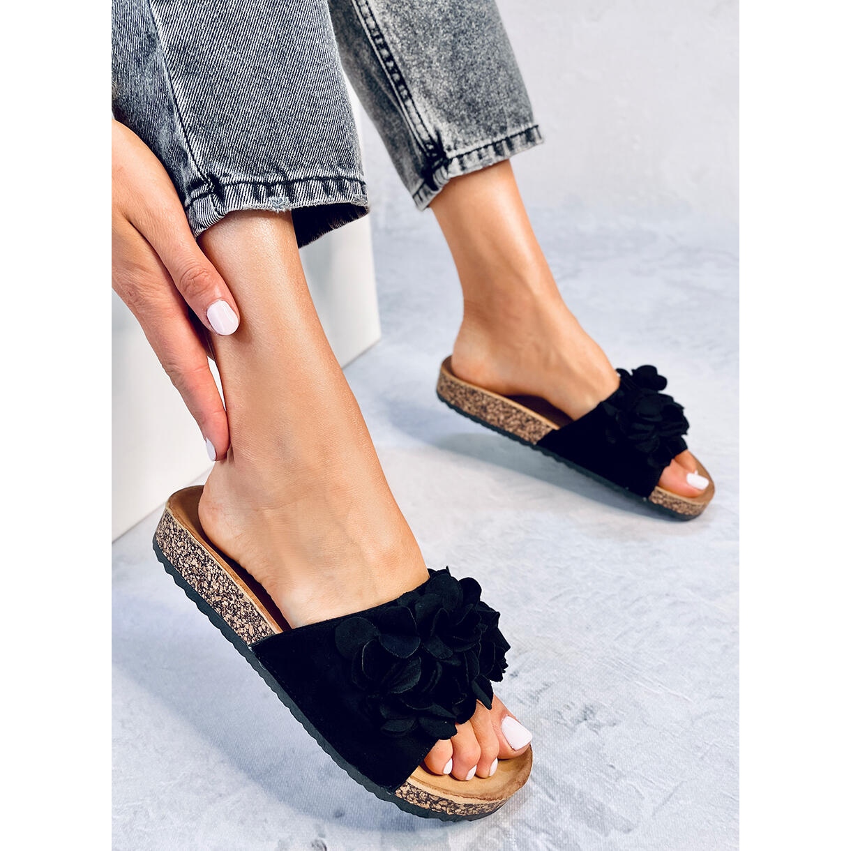 BM BM Pantoufles Fowley en liège à fleurs noires le noir