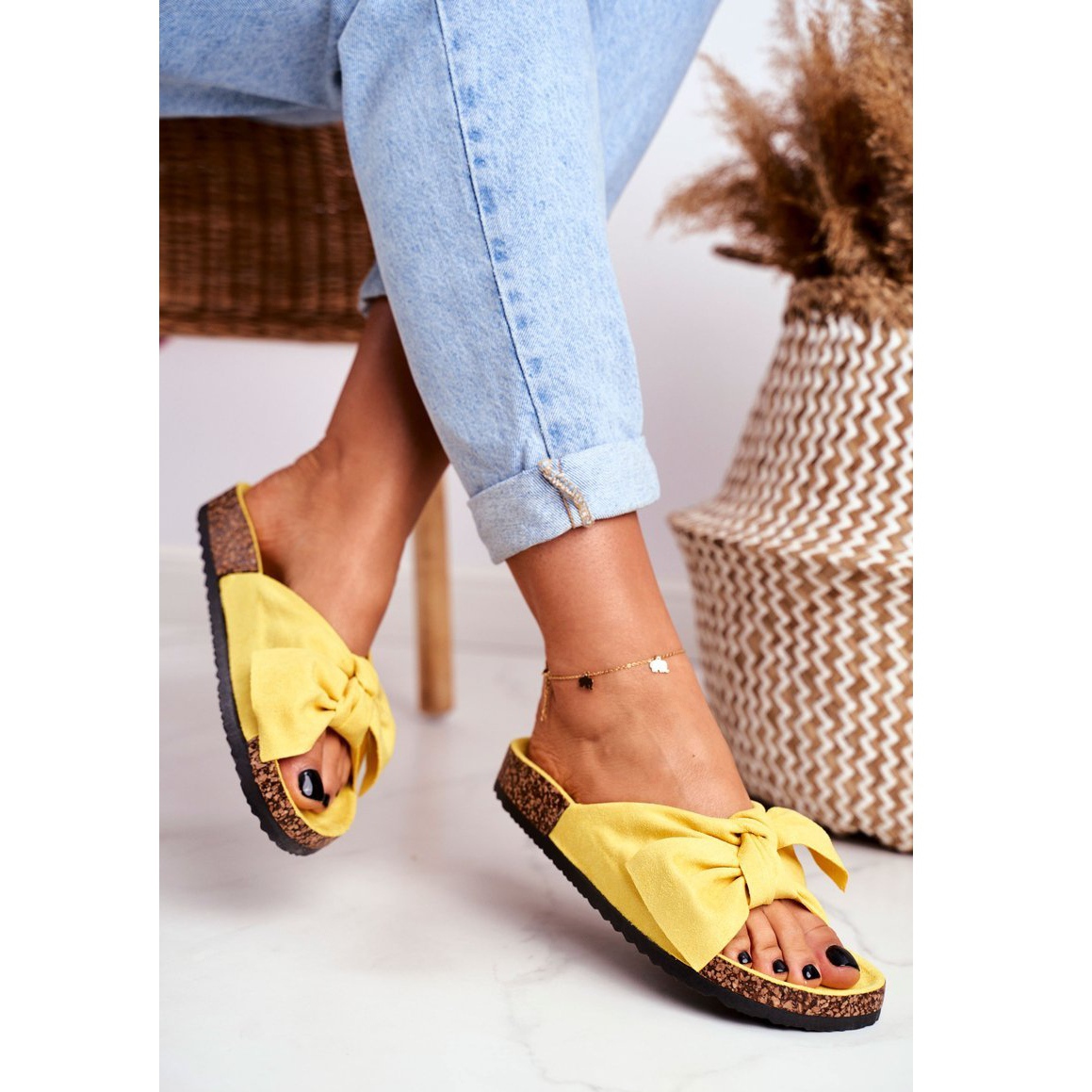 Détails: PS1 Pantoufles jaunes pour femmes sur le nœud en liège Wendy