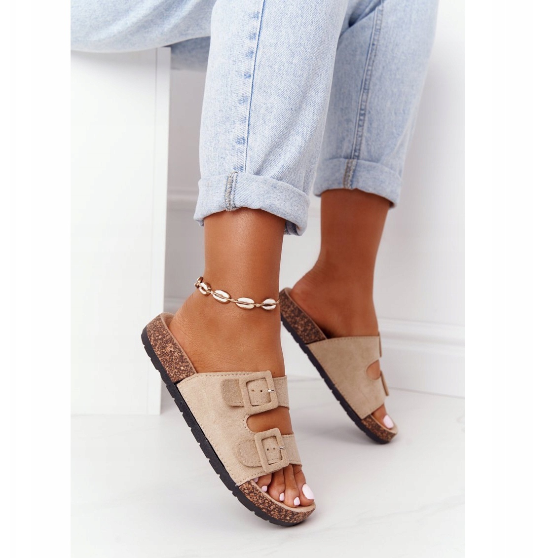 Détails: MSMG Pantoufles Jennifer Beige En Daim Sur Semelle En Liège