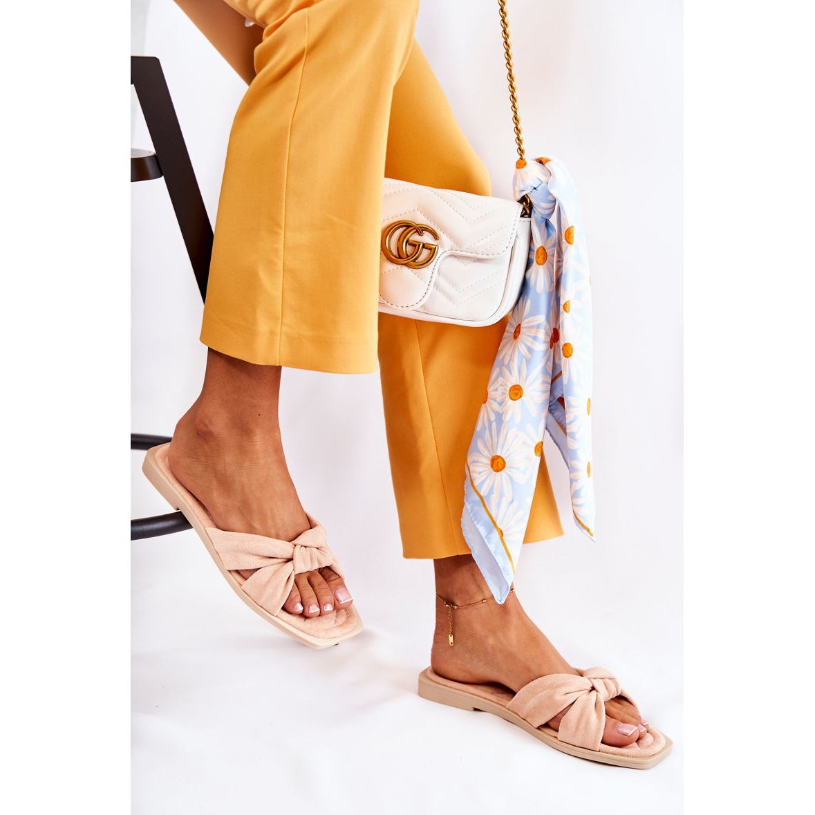 Découvrez le charme et le confort des pantoufles classiques PG1 pour femmes, des pantoufles tendance en daim nude. Fabriquées en éco-daim doux, ces élégantes claquettes se distinguent par un subtil nœud reliant les brides sur le devant, ce qui leur confère un caractère unique.