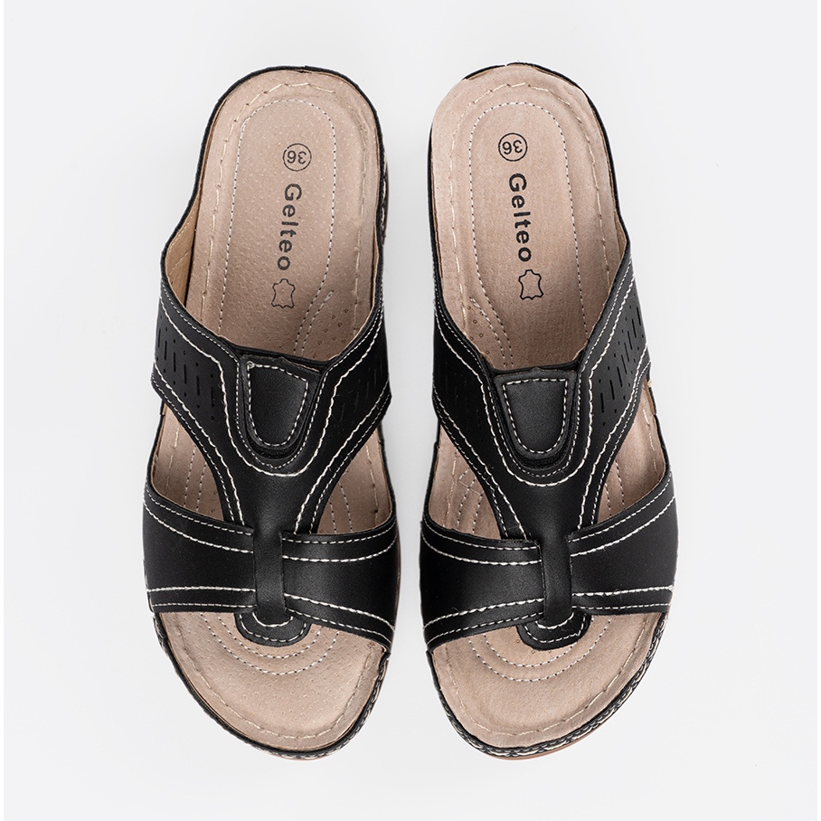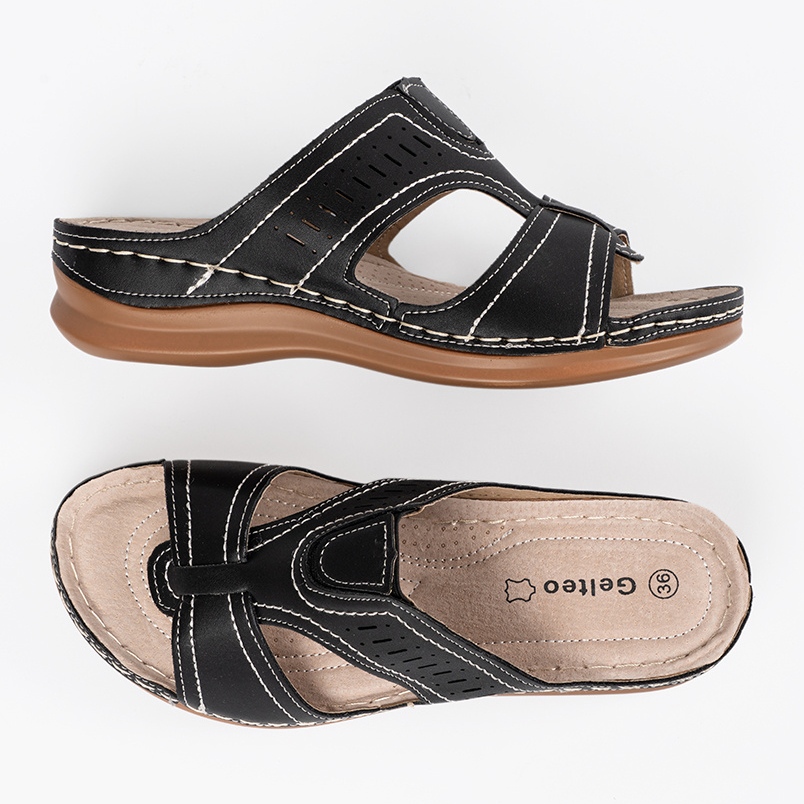 Les pantoufles noires sont un excellent choix pour chaque femme qui apprécie à la fois l'élégance et le réconfort chaque jour. Fabriquées en cuir biologique de haute qualité, ces tongs décontractés sont non seulement superbes, mais sont également respectueux de l'environnement.