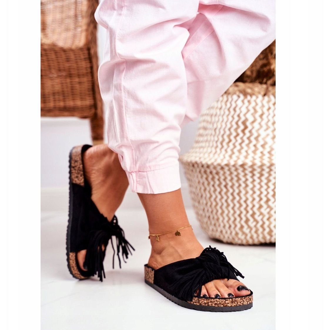 Détails: BUGO Pantoufles Noires Pour Femmes On The Cork Fringe Marina le noir