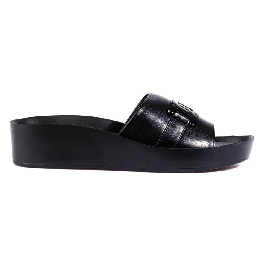 Détails: Pantoufles noires pour femmes sur la plateforme Shelovet