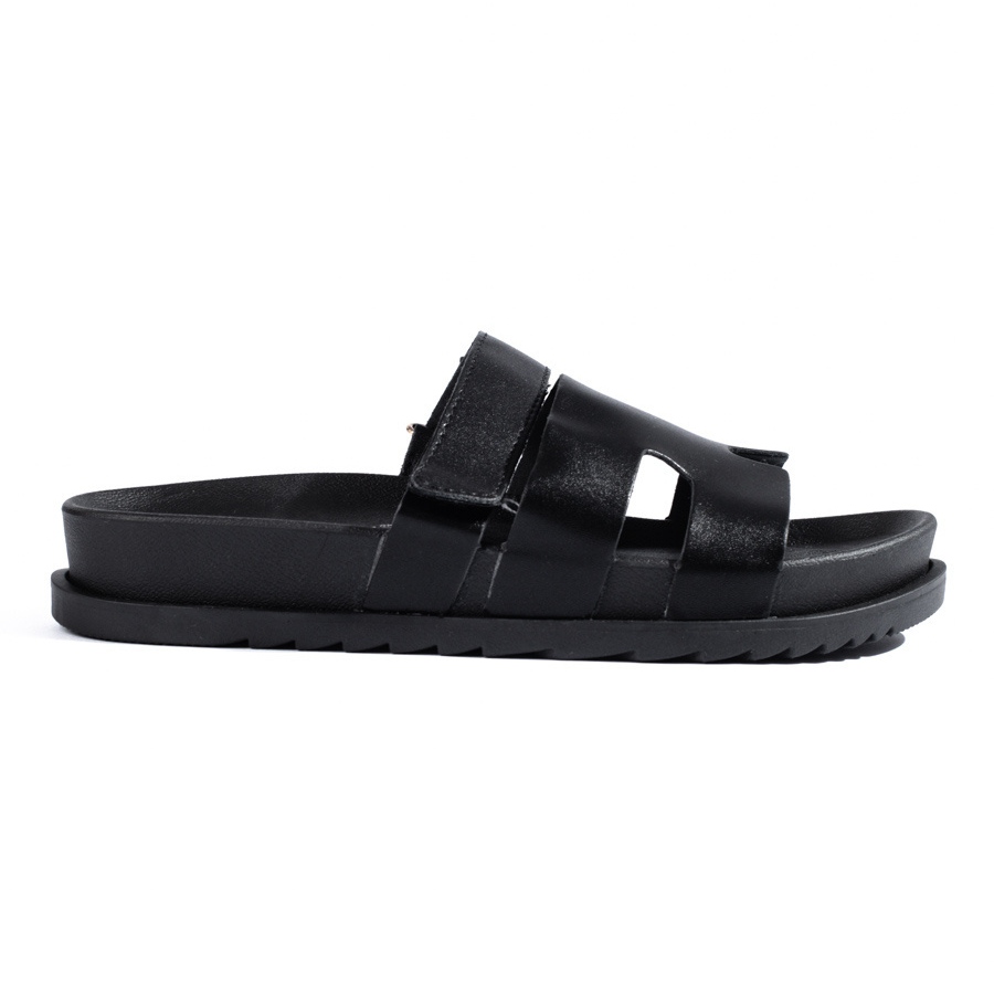 Le grand avantage de ce modèle de tongs réside dans leurs couleurs universelles - le noir classique s'adaptera bien à presque toutes les couleurs de vêtements et d'accessoires. Une plateforme épaisse de 2 cm de hauteur ajoute un caractère tendance sans obliger l'utilisateur à avoir une position de pied non naturelle.
