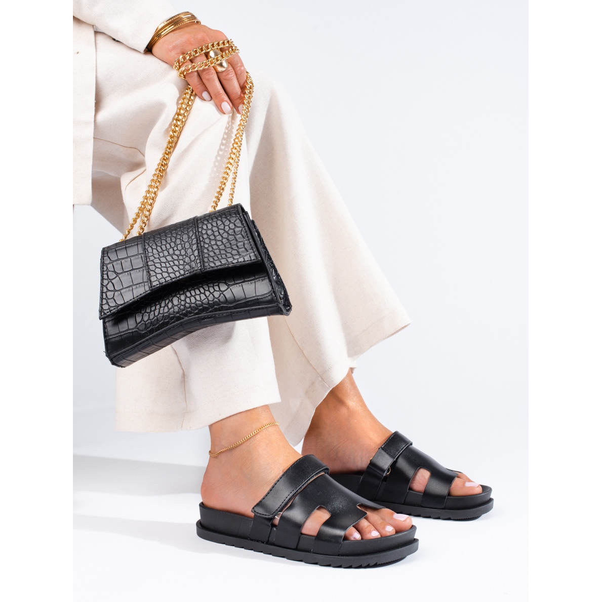 Pantoufles noires pour femmes sur une plate-forme Shelovet épaisse