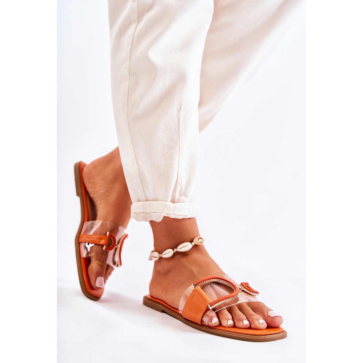 Des pantoufles d'été à la mode pour les femmes qui apprécient l'élégance et le confort ! Les tongs uniques sont faites de plastique transparent et de cuir écologique sur le dessus. De plus, il y a un élément décoratif en plastique sur le devant. Chaussons montés sur talon plat et semelle antidérapante. La semelle intérieure en cuir écologique offrira un confort lors de l'utilisation. Bout ouvert et carré. Vous devez absolument avoir ce modèle dans votre garde-robe ! Lorsque vous choisissez une taille, veuillez utiliser le tableau des tailles.