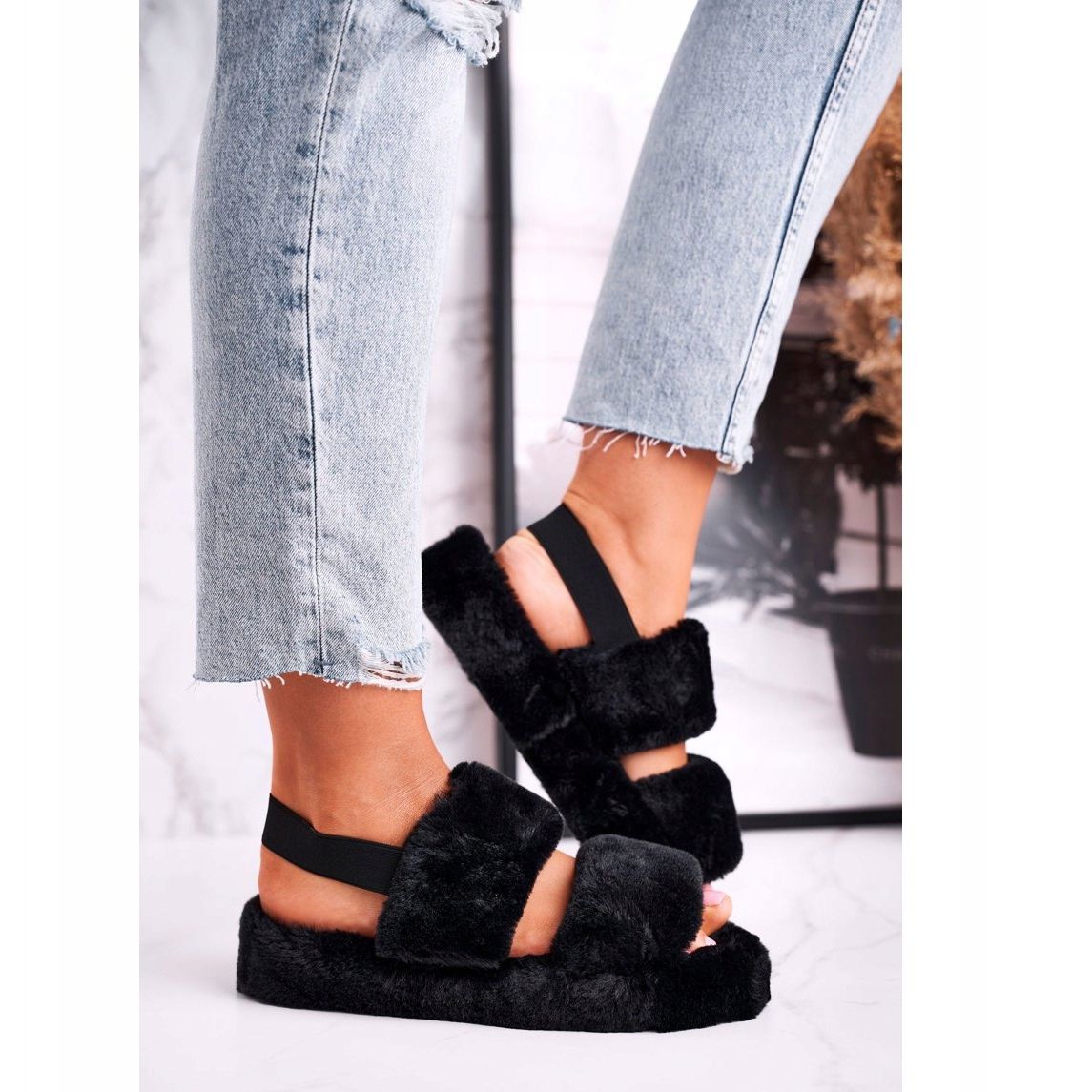 Détails: FJ1 Pantoufles pour femmes sur la plate-forme Fourrure Black Cotton Candy le noir