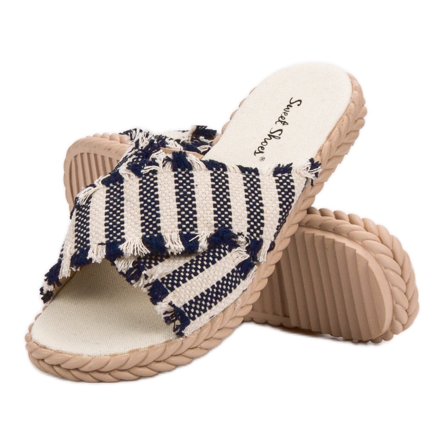 Préparez-vous pour les aventures estivales avec les tongs à rayures bleues Seastar ! Ces chaussures légères et élégantes sont le choix parfait pour les journées chaudes, attirant l'attention avec leurs couleurs originales et leur motif tendance. Fabriqués dans des tissus naturels et doux pour la peau, ils offrent confort et respirabilité, ce qui en fait un choix idéal pour les promenades estivales au bord de la mer ou les week-ends.
