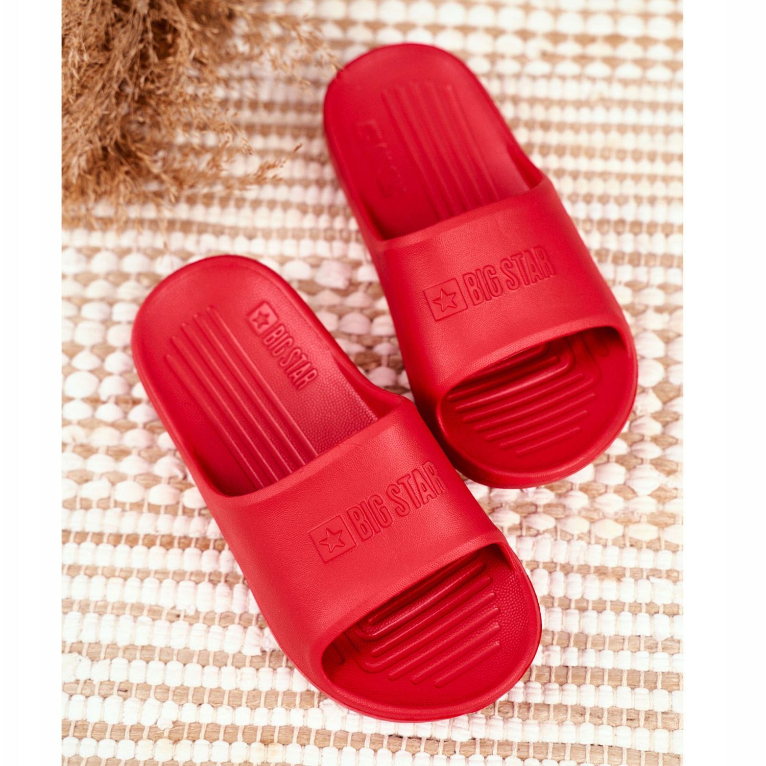 La couleur rouge des tongs attire l'attention et ajoute de l'énergie, et le subtil logo Big Star les rend à la mode et reconnaissables. Les tongs ont une fermeture à enfiler, ce qui les rend faciles à enfiler et à enlever, ainsi qu'une numérotation typique, qui facilite le choix de la bonne taille.