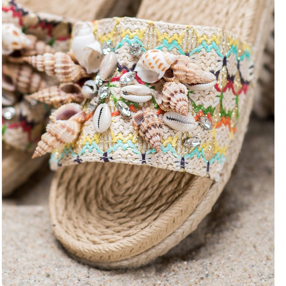 Détails: Seastar Pantoufles Sur La Plateforme Avec Des Coquillages multicolore