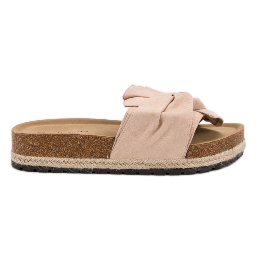 Les claquettes à plateforme marron de la marque Mannika sont le choix parfait pour les journées chaudes, qui ajouteront une touche d'élégance et de charme décontracté à votre style. Fabriqués en cuir suédé écologique de haute qualité, ils se caractérisent non seulement par un design moderne, mais aussi par un confort de port exceptionnel. Une large bride, ornée d'un charmant nœud, stabilise parfaitement le pied, tout en donnant de la subtilité aux chaussures.