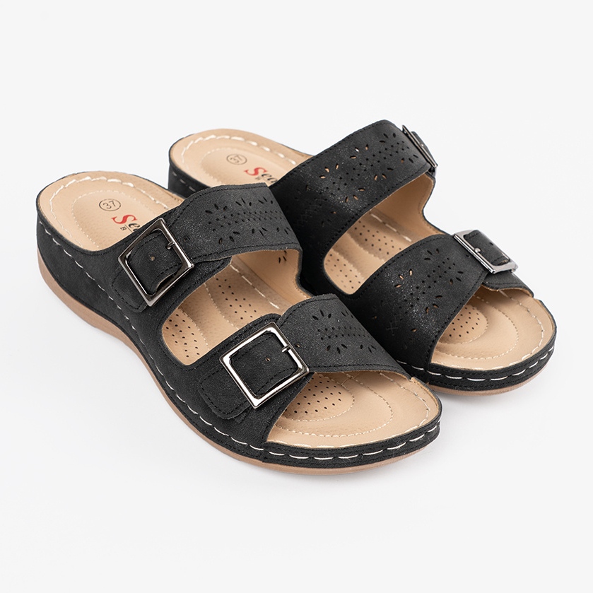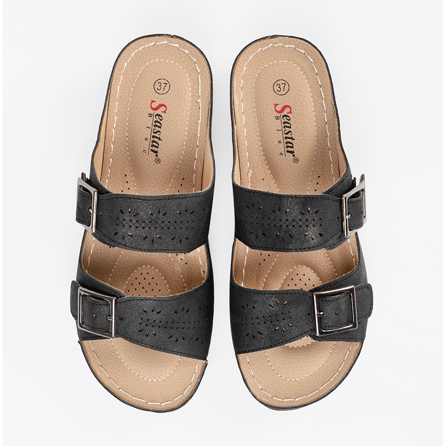 Seastar Seastar Pantoufles sur un coin bas avec des pinces noires le noir