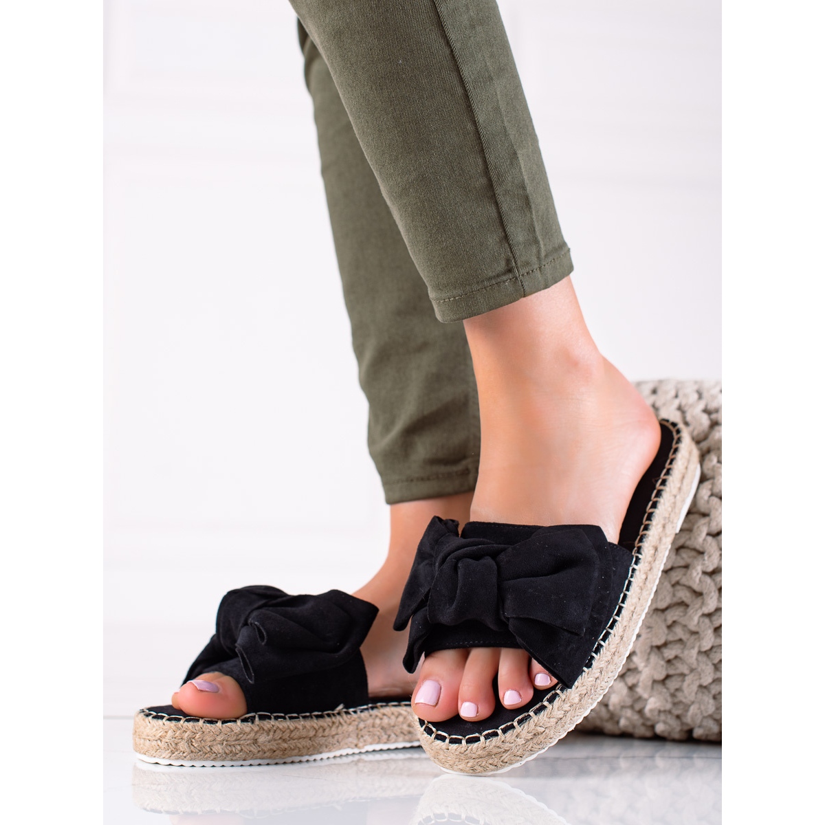 Détails: TRENDI Pantoufles sur une plate-forme de paille le noir