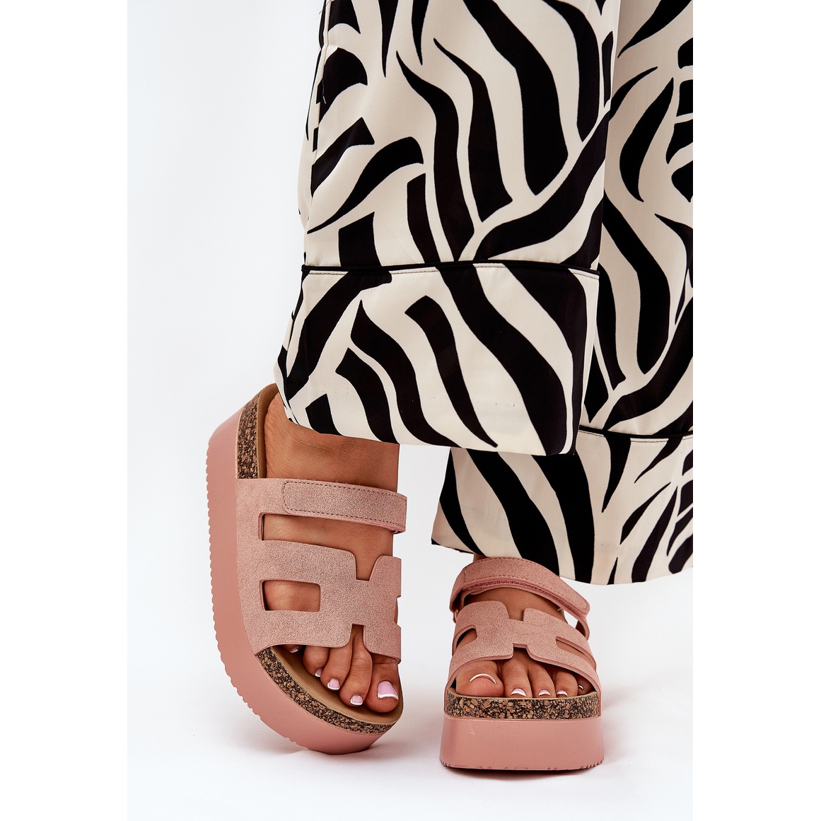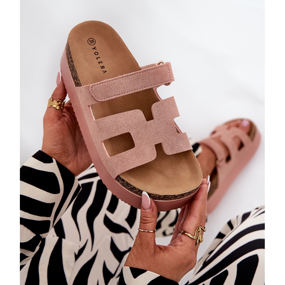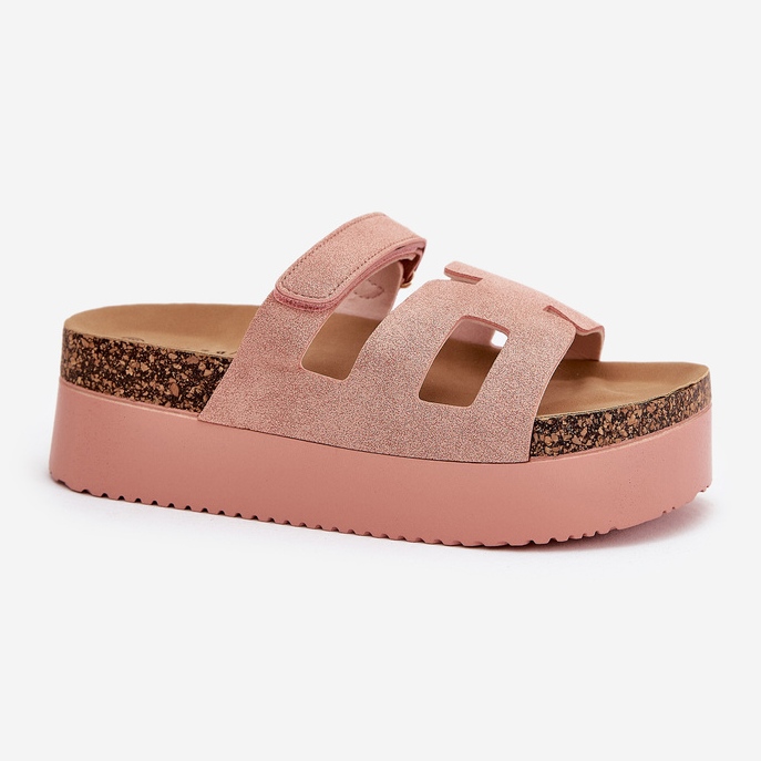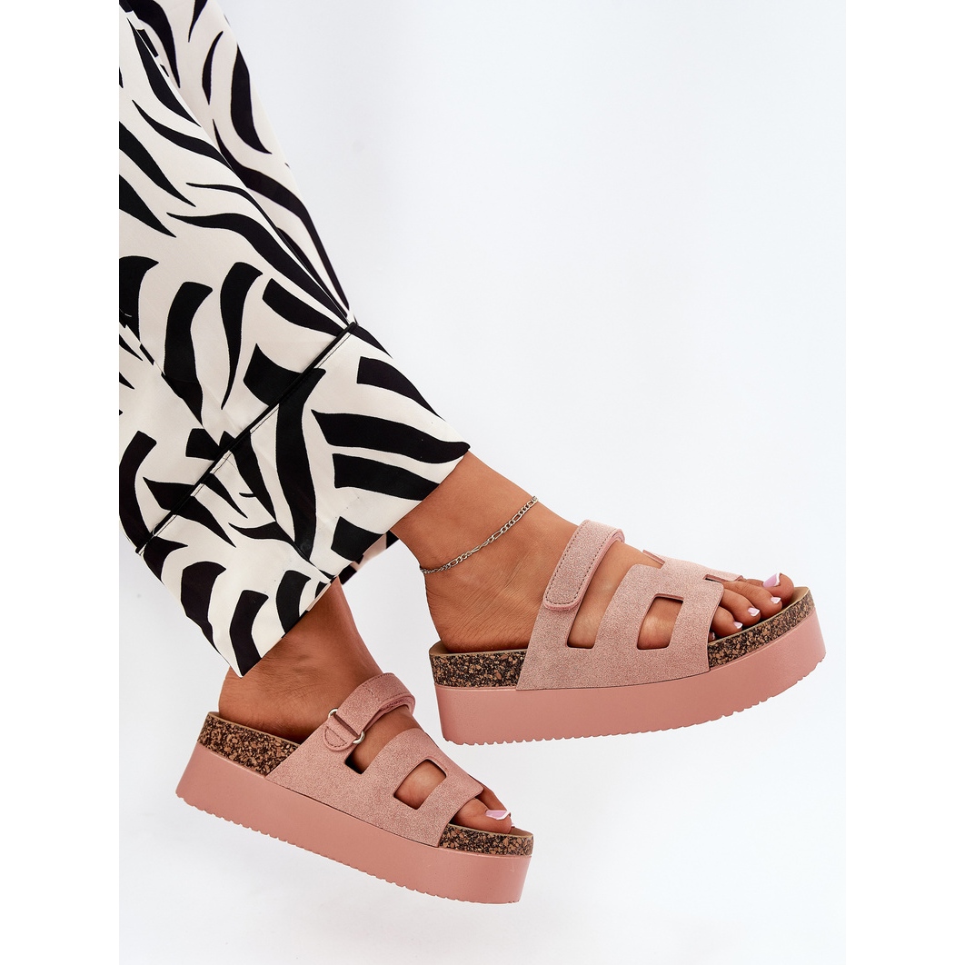 Les pantoufles sur une plate-forme massive dans une teinte rose sont une proposition idéale pour les femmes qui apprécient le style et le réconfort chaque jour. Fabriqués en daim eco, ces tongs combinent le design moderne avec les fonctionnalités. Une plate-forme massive d'une hauteur de 5 cm ajoute la légèreté et la stabilité, ce qui en fait un excellent choix non seulement pour la plage, mais aussi pour les promenades en ville.