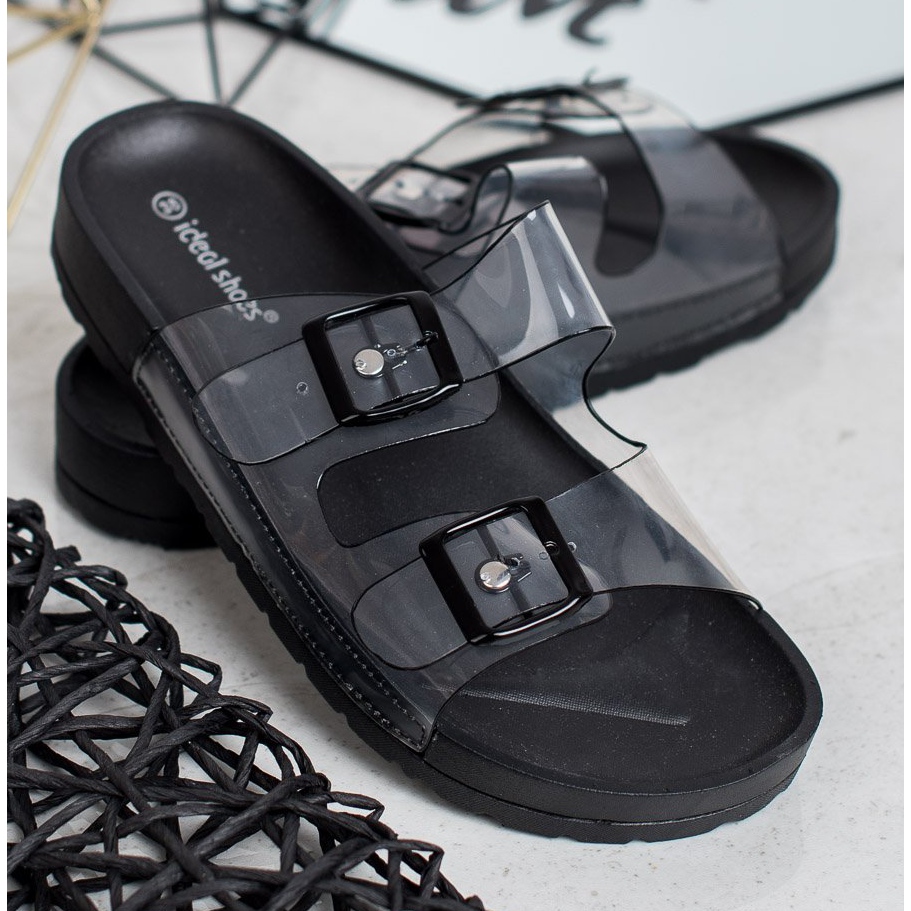 Détails: Ideal Shoes Pantoufles Transparentes Avec Une Boucle le noir