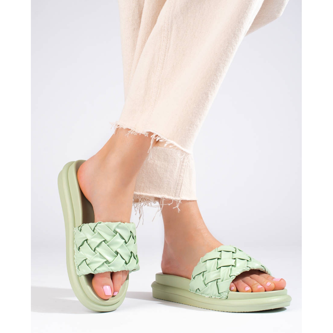 SHELOVET Pantoufles vert clair sur une plate-forme Shelovet épaisse