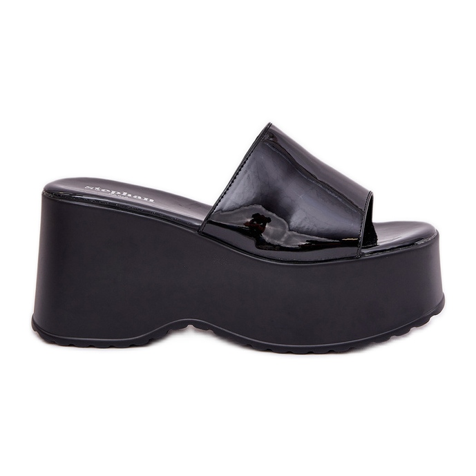 Découvrez l'élégance et la commodité en un! Les pantoufles de femmes verni sur la plate-forme et les coins noirs sont un excellent choix pour chaque femme qui apprécie le style et le réconfort chaque jour. Fabriqués en cuir écologique de haute qualité, ces tongs combinent le design moderne avec des solutions pratiques, ce qui en fait un complément parfait aux stylisations d'été.