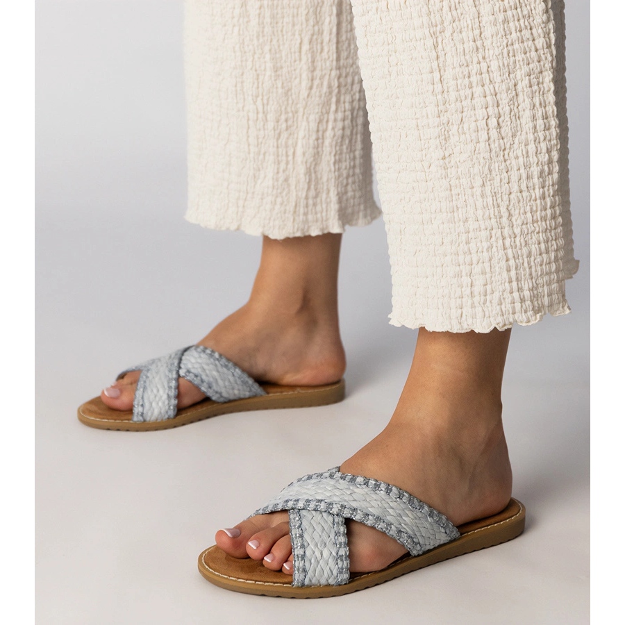 Nous présentons les tongs des femmes arrosées bleues, qui sont la combinaison parfaite de style et de confort. Ces tongs classiques avec un nez rond se distinguent par une tresse subtile, ce qui leur donne la légèreté et le charme unique, ce qui en fait un complément parfait à chaque stylisation décontractée.