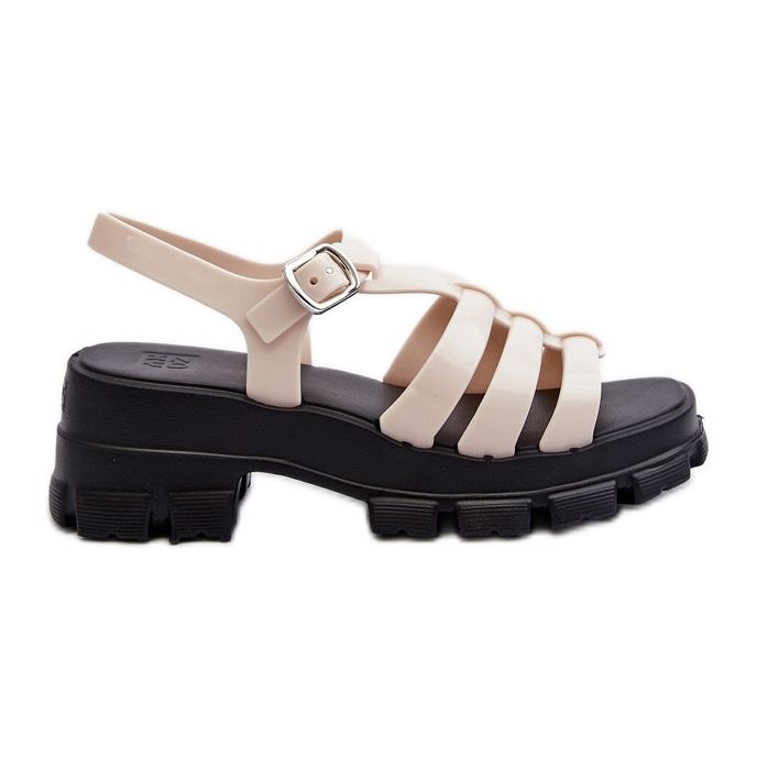 Grâce à la coupe sportive et à l'odeur unique du caoutchouc de ballon, qui s'accompagne de porter ces sandales, chaque instant passé en eux sera un plaisir. La semelle de 6 cm de haute offre un réconfort lors d'une utilisation prolongée, et la couleur noire des seuls contrastes bien avec le matériau beige léger.