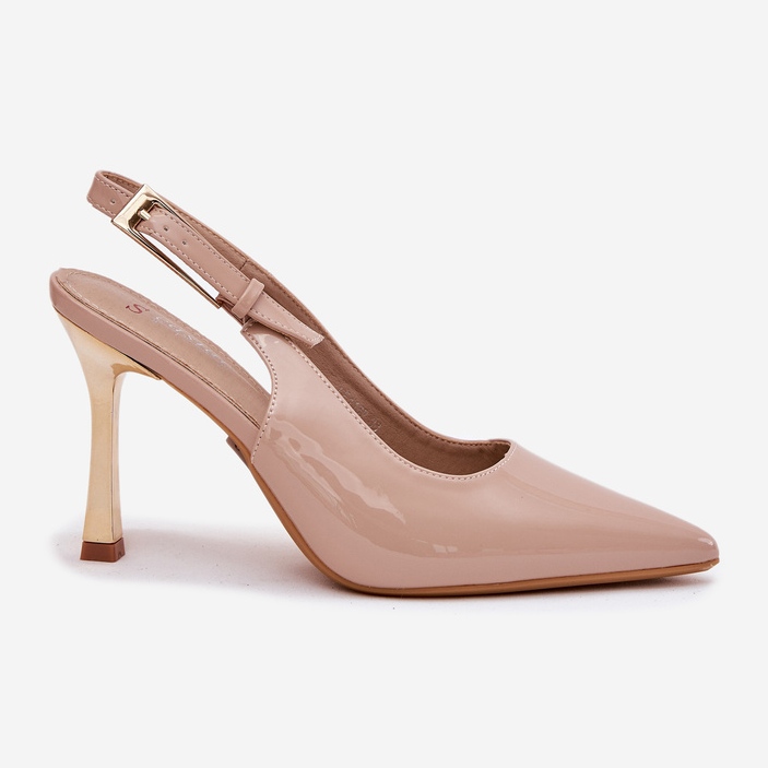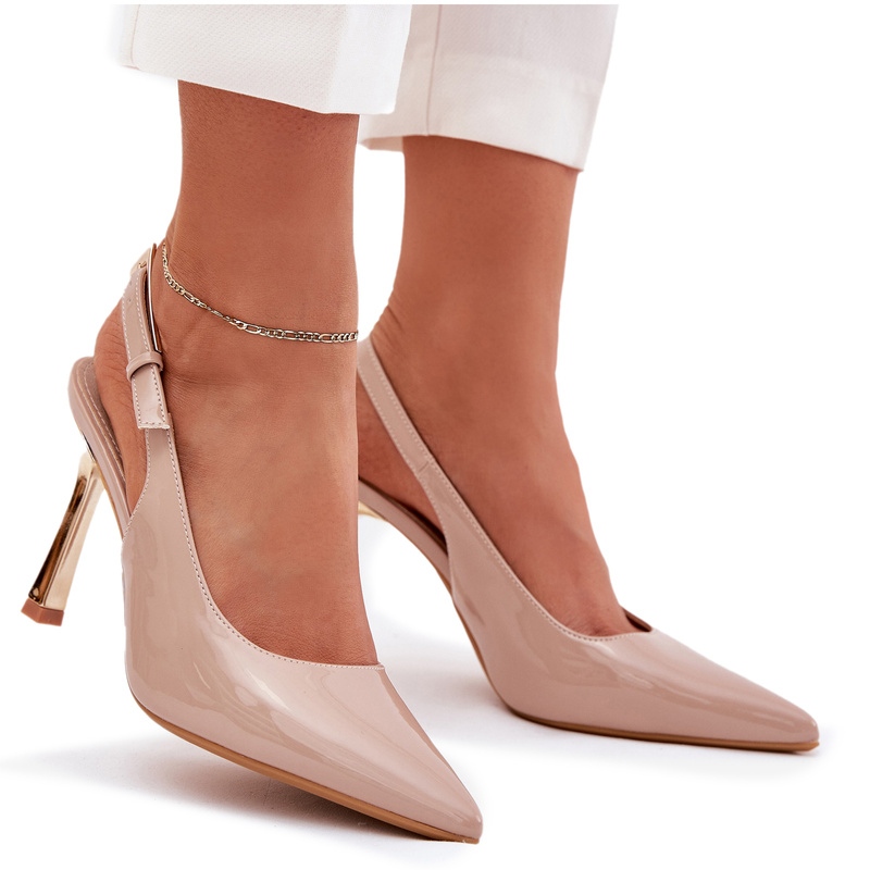 Détails: Peint à talons hauts avec un talon ouvert et des orteils pointus beige