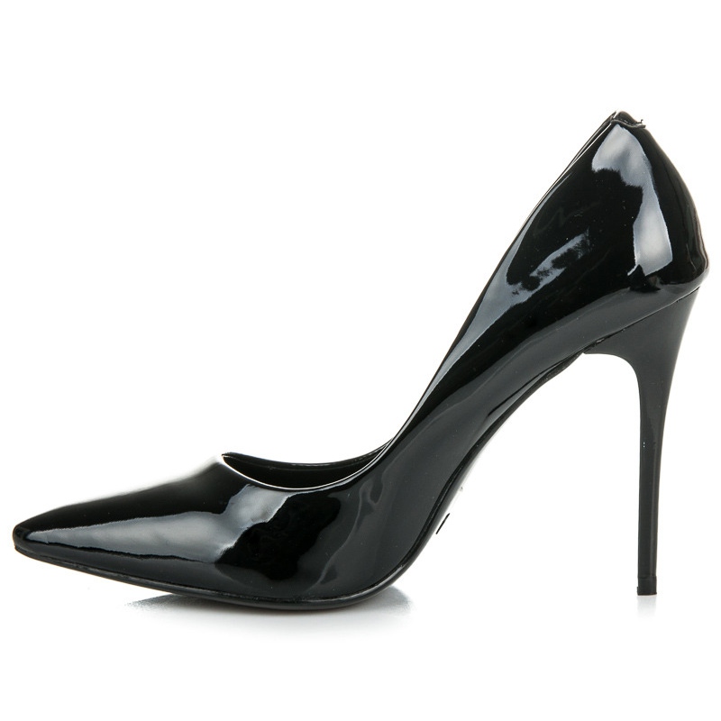 La couleur noire du matériau verni fait de ces chaussures un accessoire parfait aussi bien pour les sorties en soirée que pour les célébrations spéciales. Grâce à la hauteur du talon de 10,5 cm, les jambes paraissent plus fines et le bout pointu élégant ajoute encore plus de classe.